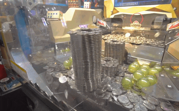 电玩城的通行货币是游戏币,握在手上跟钱的手感差不多。推币机掉落硬币的哗啦哗啦响声,更给电玩城渲染了一些“纸醉金迷”的感觉。